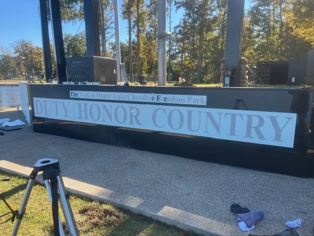 Friends of the Freedom Park. Last year, a loose collection of veterans and supporters, informally called the “Friends” provided valuable feedback on construction and design. This group organized the 2024 Veterans Day Ceremony in November and helped the Lake Cherokee Community Foundation (LCCF) put on the incredibly successful November fundraising gala at the Cherokee Club. Construction is winding down, but now, the Friends are looking at using Freedom Park for ceremonies, veterans’ activities, and special events. Importantly, the Friends are researching ways to honor more veterans since the Wall of Honor is full.