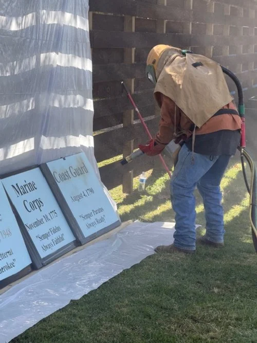 The granite for the Wall of Honor will be sandblasted on site. Once this is done, the Wall of Honor will be complete!