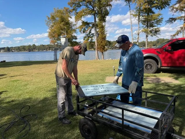 The inspiration behind the Memorial is Thomas White. A long-time resident of Lake Cherokee, His vision has been percolating for almost a decade. He donated countless hours designing the Memorial. And his donations, through Signature Builders, of equipment, services, and labor, has allowed the Memorial to be built for a cost far less than would be expected. This savings allowed us to move donor funds to landscaping, making the Memorial a pristine, park-like space for Lake residents and veterans.
