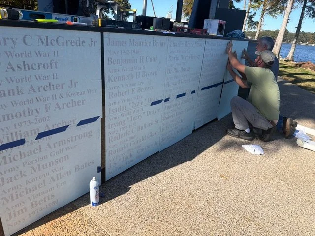 Sign Country has provided us with our first proof of the stenciling for the names on the Wall of Honor and Flagpole bases. Friends of Freedom Park (formerly Friends of LCVM) will review the proof this week and then send out to all the Wall of Honor donors and Flagpole sponsors for their final approval.